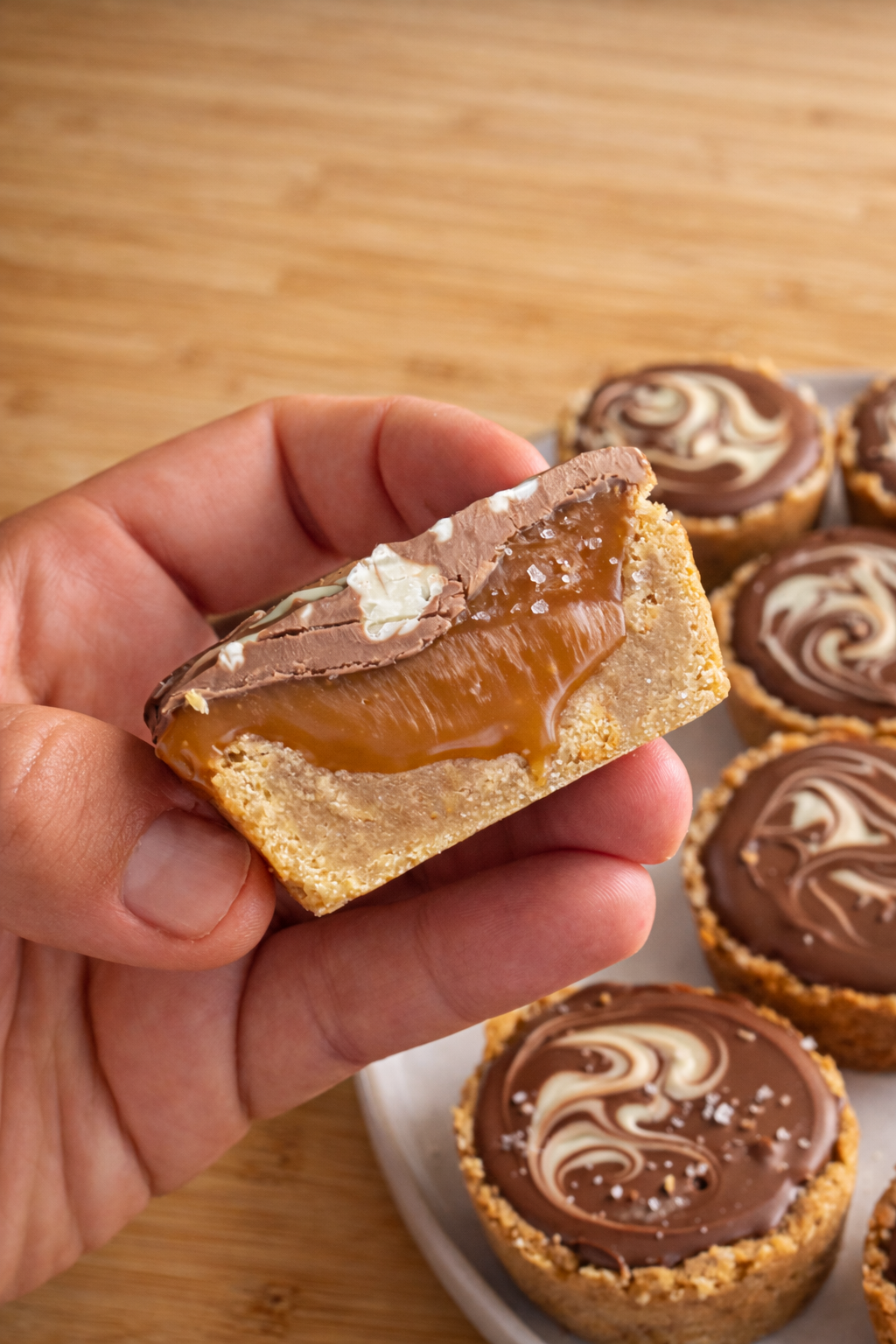 Fill chilled cookie cups with salted caramel.
